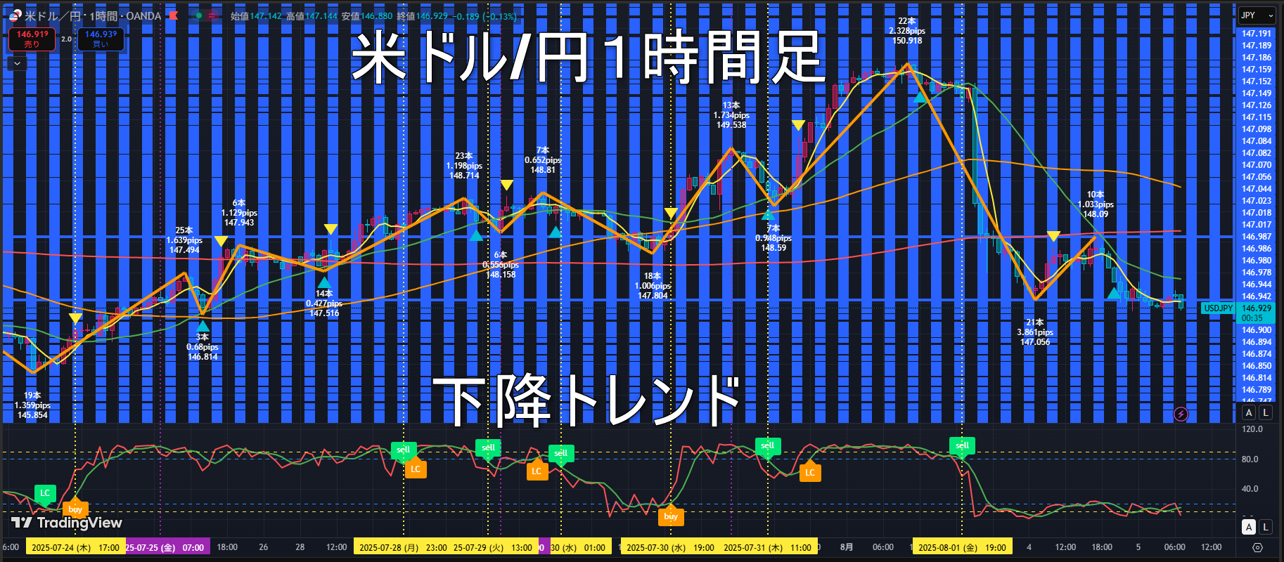 オリジナルインジケーターは8/24(木)14:00のローソク足で買いシグナルが出ていましたね。
