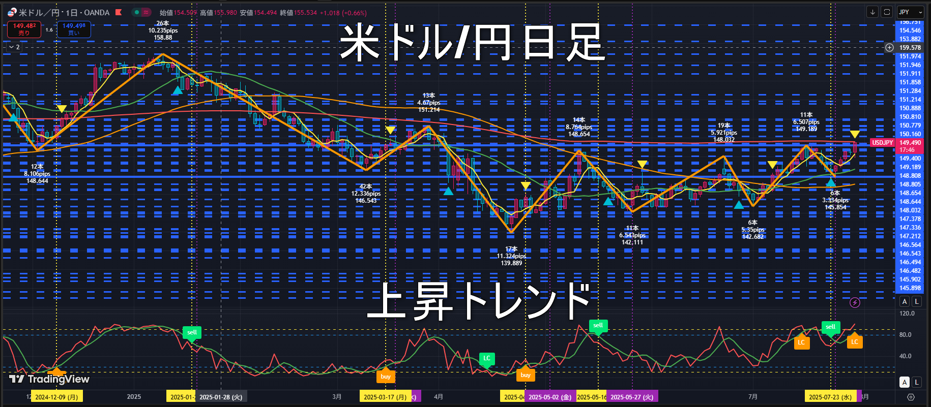 2025年7月31日(木)米ドル/円のトレンド判断。