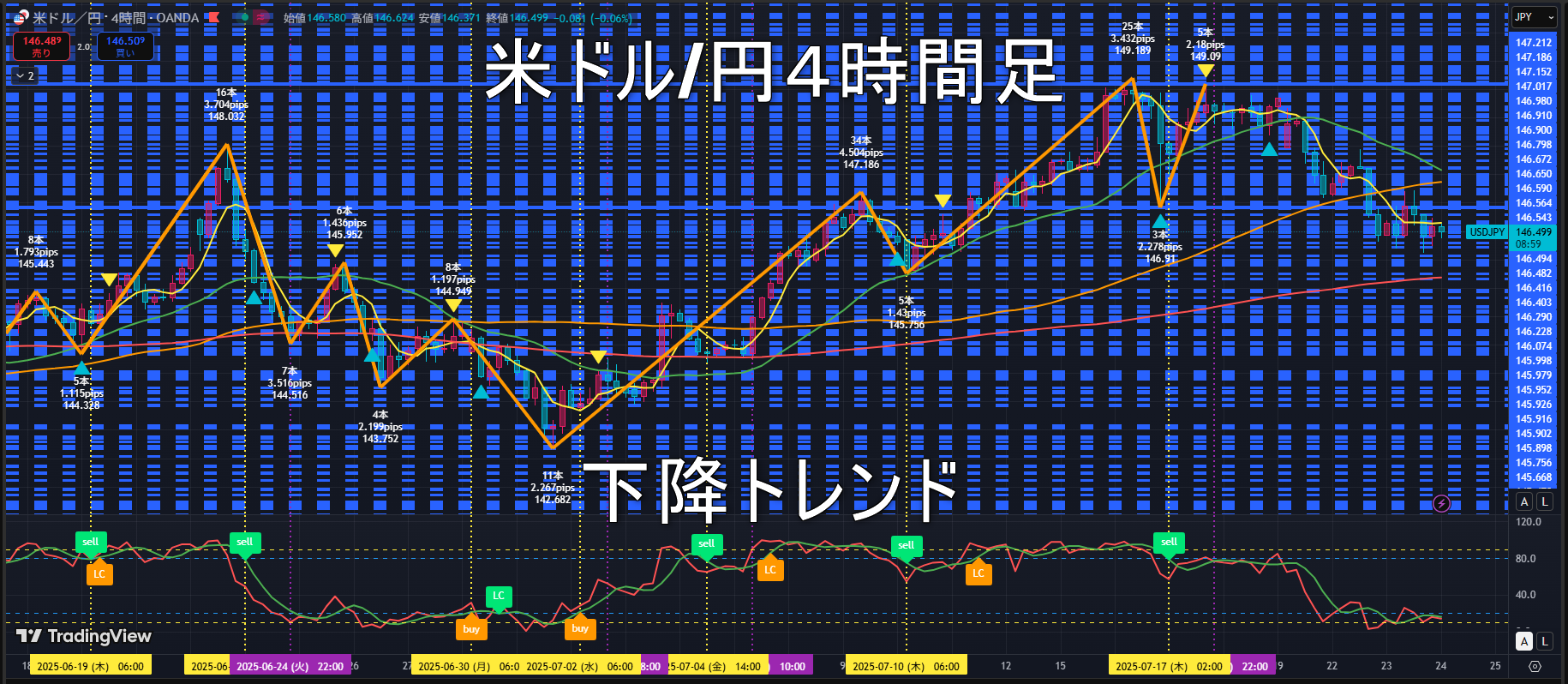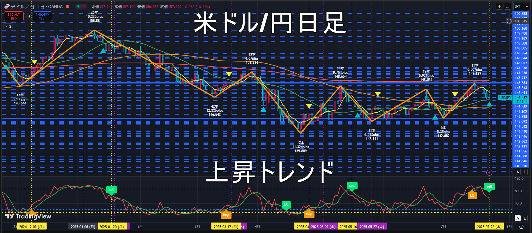 2025年7月24日(木)米ドル/円のトレンド判断。