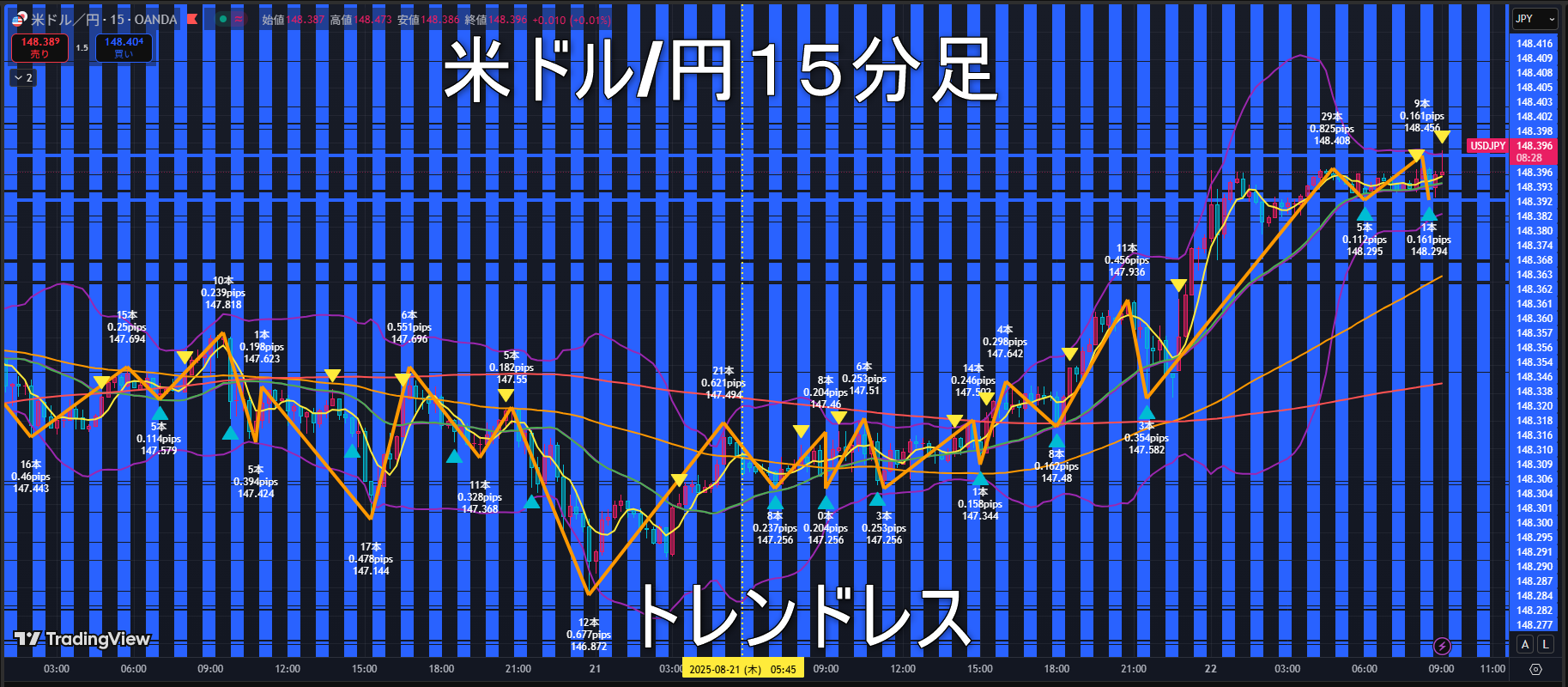 近ピーク147.818円を上回るとトレンドレスに転換しますので様子見
