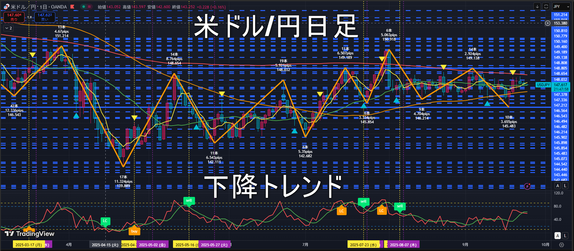 2025年9月24日(水)米ドル/円のトレンド判断。